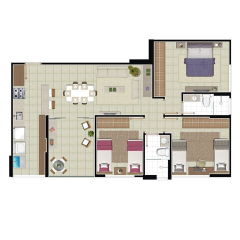 Os apartamentos são compactos de 2 e 3 dormitórios, varandas generosas de 53m, tudo para oferecer conforto e comodidade para os solteiros, casais e recém-casados.